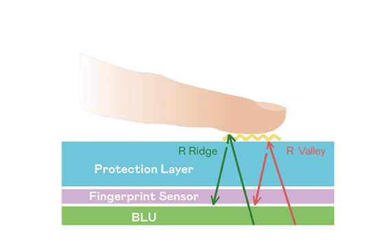 TFT 指紋掃描感測技術利用薄膜電晶體 (TFT) 當作光感測元件,藉由非晶矽 (a-Si) 與低溫多晶矽(LTPS)既有光電轉換特性對不同波段光源進行吸收,使感測 IC 讀取陣列感測元件的光漏電差異,轉換成數位灰階影像。